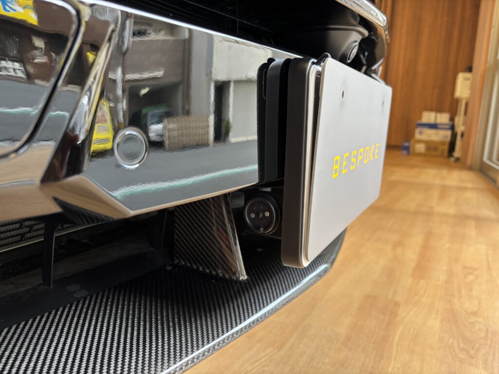 リアカメラはナンバー灯横に取り付けました。
